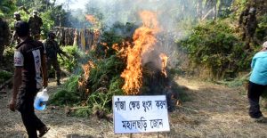 নিরাপত্তা বাহিনী সূত্র জানায়, দুর্গম পাহাড়ি জনপদ মহালছড়ির কলাবুনিয়া এলাকায় সবার অন্তরালে দীর্ঘদিন ধরে গ্রামবাসীদের দিয়ে গাঁজা চাষ করে আসছে পাহাড়ের আঞ্চলিক সংগঠন ইউপিডিএফ। অভিযানকালে পুলিশ ও গণমাধ্যমকর্মীদের উপস্থিতিতে তিন একর জমির প্রায় ১৫০০ গাঁজা গাছ পুড়িয়ে ধ্বংস করা হয়।
