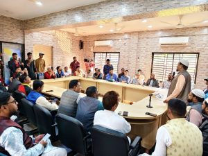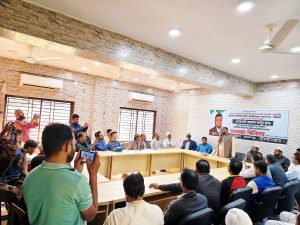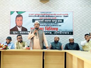 ধলাই ডেস্ক: বাংলাদেশ জামায়াতে ইসলাম ক্ষমতায় গেলে সকলকে নিয়ে ইনসাফের বাংলাদেশ প্রতিষ্ঠা করা হবে বলে মন্তব্য করেছেন মৌলভীবাজার-৪ (শ্রীমঙ্গল-কমলগঞ্জ) আসনে জামায়াতে ইসলাম প্রার্থী অ্যাডভোকেট মোহাম্মদ আব্দুর রব। শুক্রবার (২৮নভেম্বর) দুপুরে কমলগঞ্জ প্রেসক্লাবে উপজেলায় কর্মরত সাংবাদিকদের সাথে শুভেচ্ছা বিনিময় করছেন।